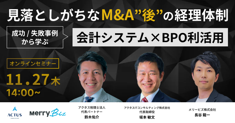 見落としがちなM&A”後”の経理体制 成功 / 失敗事例から学ぶ 会計システム×BPO利活用