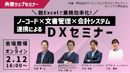 | 主催 | 株式会社NTTデータ イントラマート、オリックス株式会社、株式会社オービックビジネスコンサルタント |