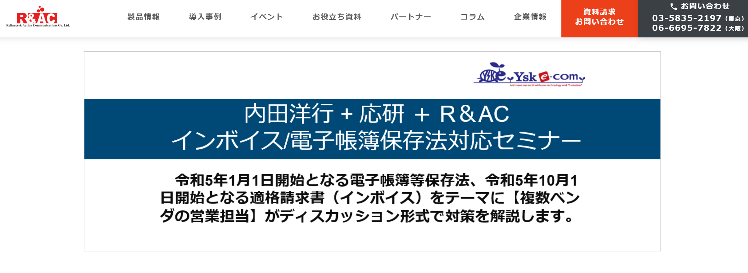 ③【内田洋行×応研×R&AC】インボイス/電子帳簿保存法対応セミナー【株式会社YSKe-com】