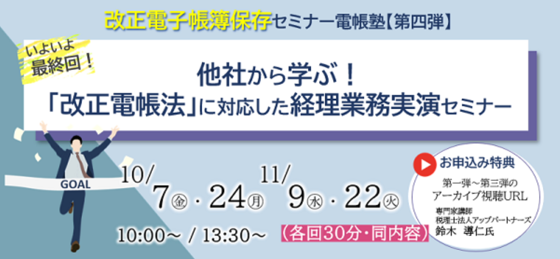 ④【電帳塾】第四弾:他社から学ぶ!「改正電帳法」に対応した経理業務実演セミナー 【株式会社オービックビジネスコンサルタント】
