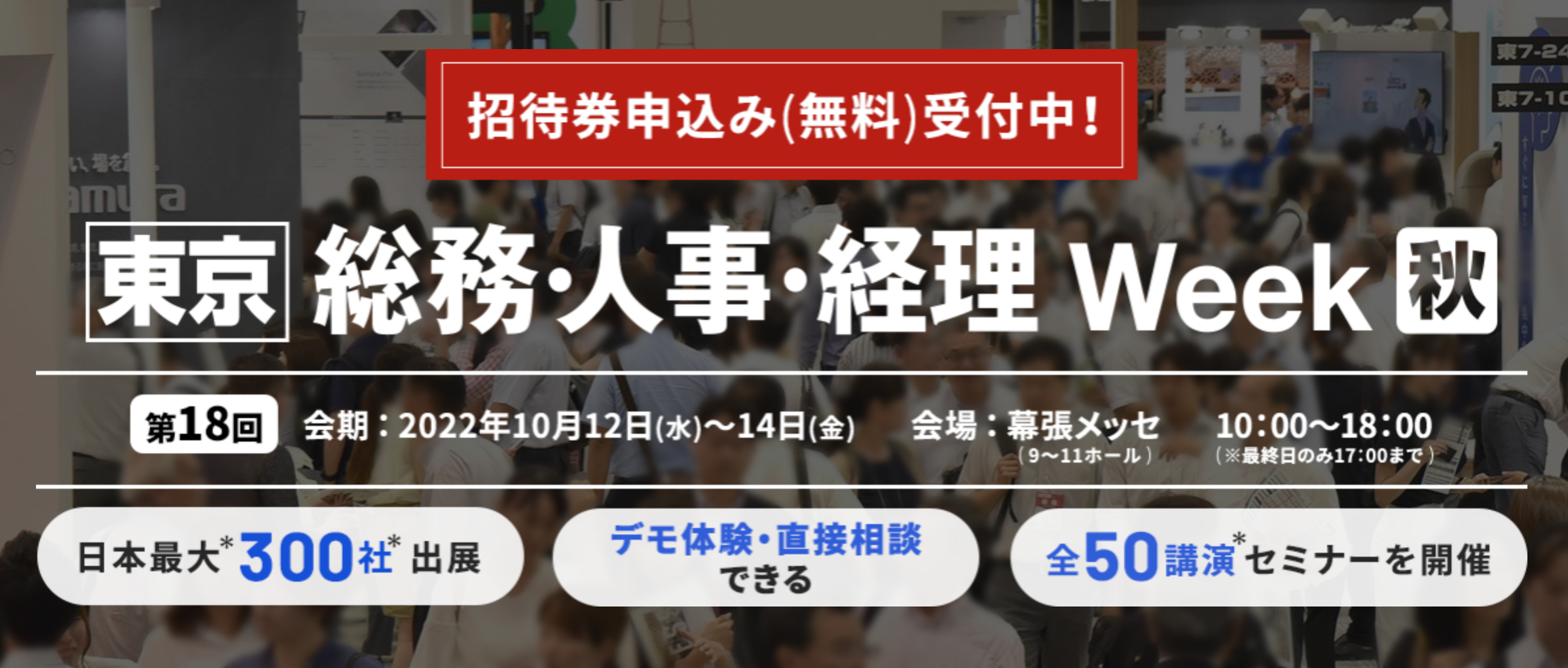 | 対象 | ✔自社の管理部門(経理・総務・人事)に課題を感じられている方 ✔最新ソリューションをその場で比較検討したい方 ✔その場でサービスの体験や直接相談を行いたい方 |