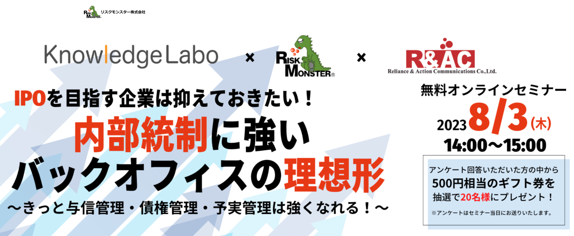 ③IPO を目指す企業は抑えておきたい!内部統制に強いバックオフィスの理想形【株式会社ナレッジラボ、リスクモンスター株式会社、株式会社アール・アンド・エー・シー】