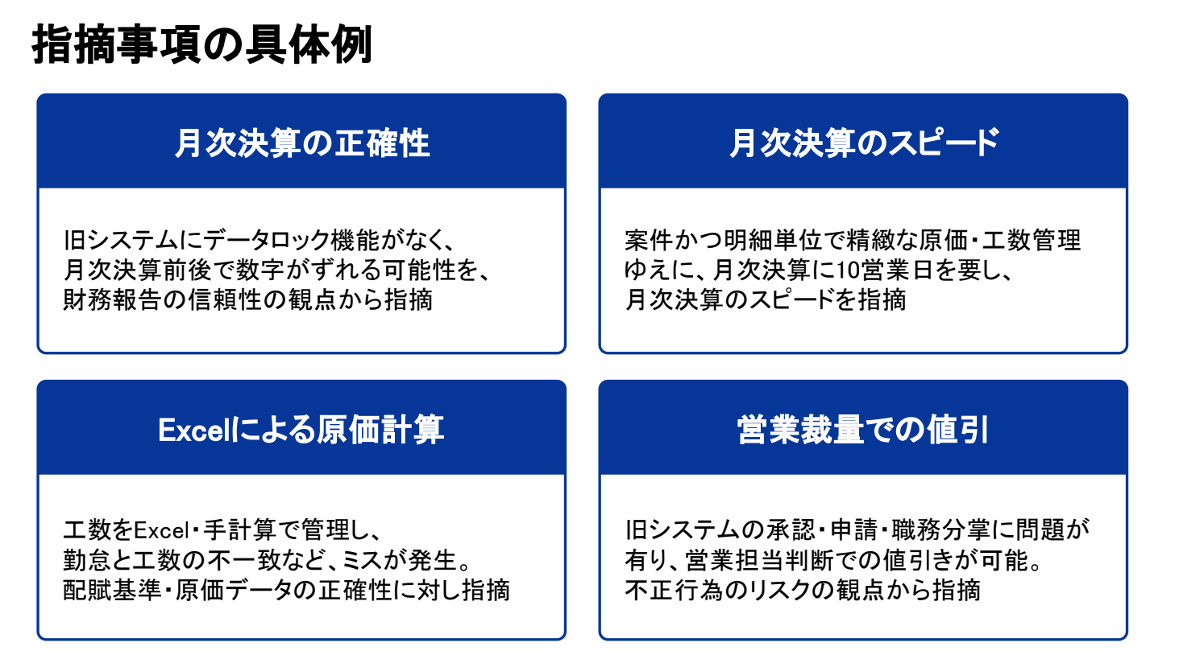 吉井:このようなシステム選定の落とし穴を回避するには、監査法人の指摘ポイントを意識して早期のタイミングからしっかり準備を進めておくこと、そのためにも不備となりうる点を補うシステムを選ぶことが重要です。