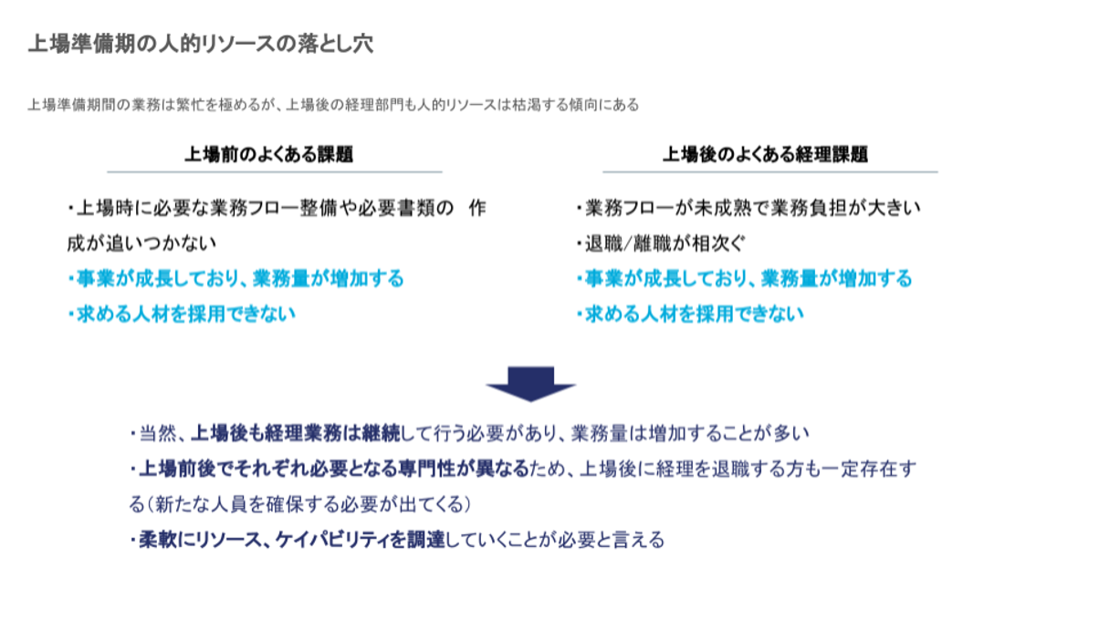 改めて、人的リソースの観点で、上場前後の課題を確認します。