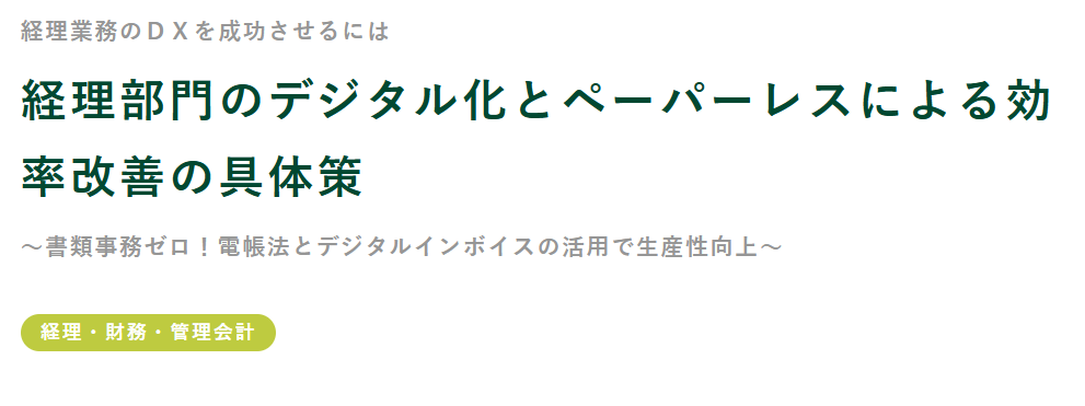 | 対象 | ✔経理業務の効率化やデジタル化を検討されている方 ✔経理業務にて業務の煩雑化にお悩みの方 ✔経理業務のデジタル化に関する最新トレンドや技術に関心がある方 |