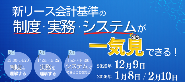 | 対象 | ✔企業の新リース会計基準への対応フェーズに合わせて情報収集したい方 ✔改正要点と2027年4月強制適用に向けて企業が備えるべき内容や適用後に必要な実務を知りたい方 ✔前準備と影響の測定、実施後の効果測定など考慮すべき点を理解したい方 |