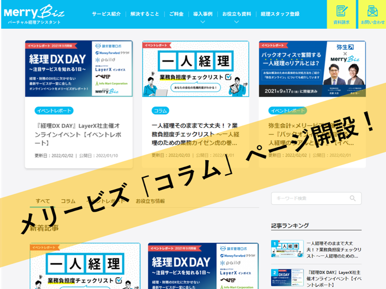 このたびメリービズはコラムページを開設いたしました。 経理の実務に活かせる情報や、必ず押さえておきたい業界の最新トレンドを公開しております。