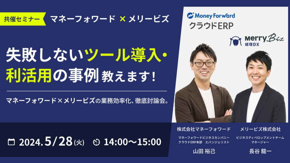 2024年5月28日(火)、株式会社マネーフォワードとメリービズの共催セミナーを開催いたします。