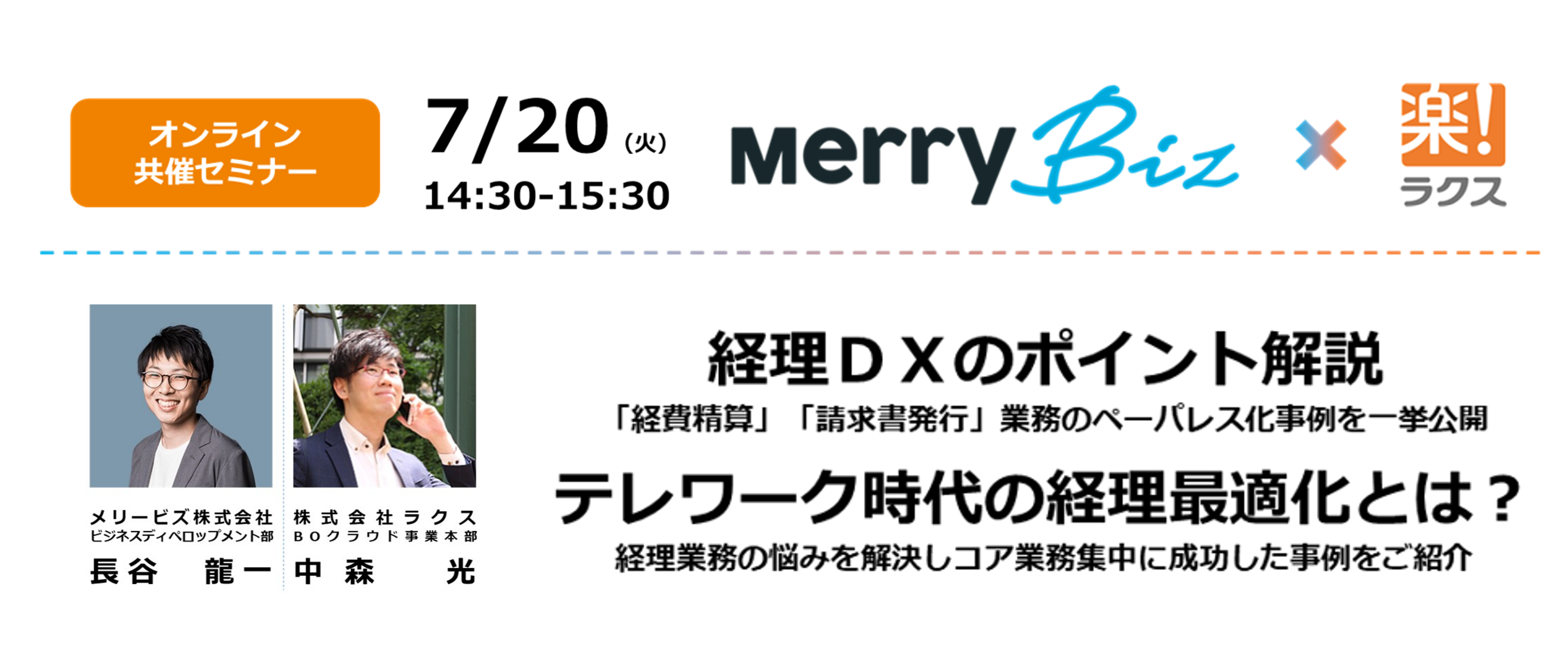 2021年7月20日(火) 14:30~15:30、ラクス社×メリービズにて「経理DXセミナー」を共同開催いたします。