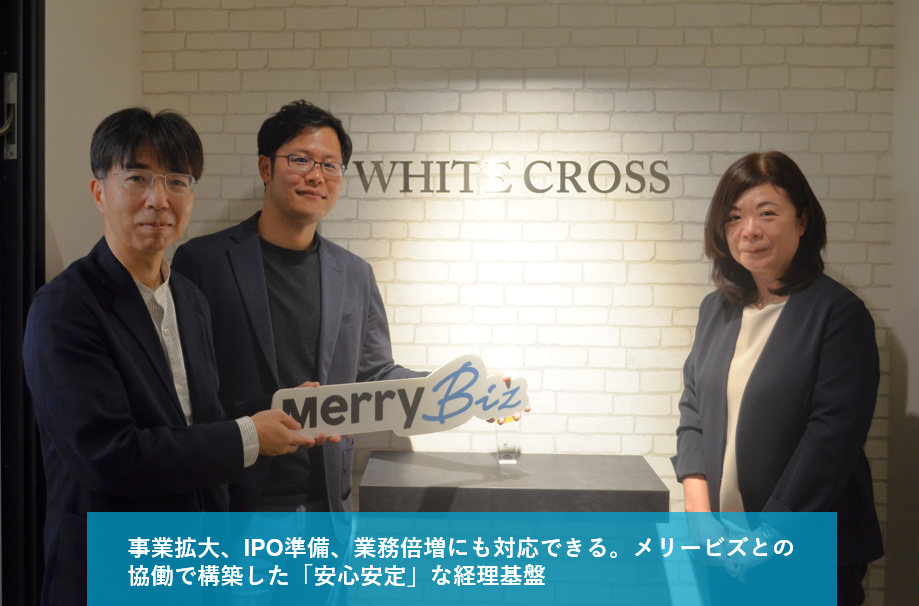 メリービズ株式会社(本社:東京都渋谷区、代表取締役:山室 佑太郎、以下「メリービズ」)は、WHITE CROSS株式会社(本社:東京都渋谷区、代表取締役社長:赤司 征大、以下「WHITE CROSS」)が、オンライン経理アウトソーシング『バーチャル経理アシスタント』を導入し運用を開始しましたことをお知らせいたします。
